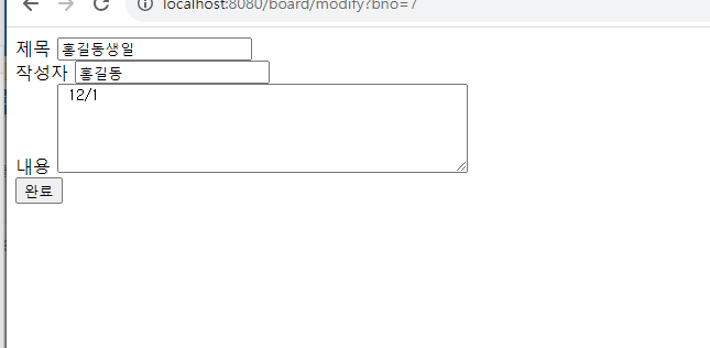 @PostMapping("/modify")//์ฃผ์๋ ๋ค๋ฅธ ํ์ด์ง์ผ ๊ฒฝ์ฐ์๋ String