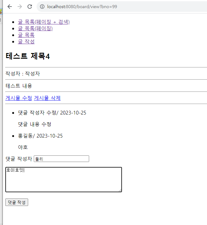 1. ๊ฒ์๋ฌผ ์กฐํ ํ์ด์ง์์ ๋๊ธ ์์ฑ ํ ๋ฑ๋ก