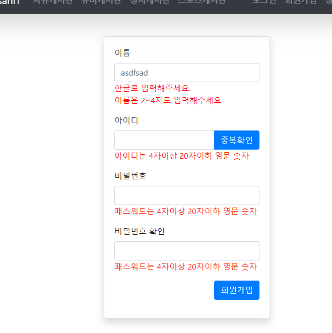 ์กฐ๊ฑด๋ฌธ์ผ๋ก ๋ง์ฝ ์๋ฌ๊ฐ ๋๋ค๋ฉด joinํ์ด์ง๋ก ๋ค์ ๋์๊ฐ๋ฉฐ ์๋ฌ๋ฉ์ธ์ง(VO์์ ์ง์ )๋ ๊ฐ์ด ๋ฐํ๋จ