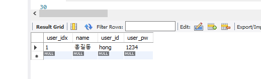 insert into user(name, user_id, user_pw)