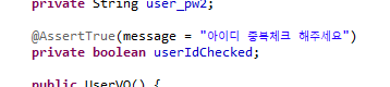 @AssertTrue(message = "์์ด๋ ์ค๋ณต์ฒดํฌ ํด์ฃผ์ธ์")