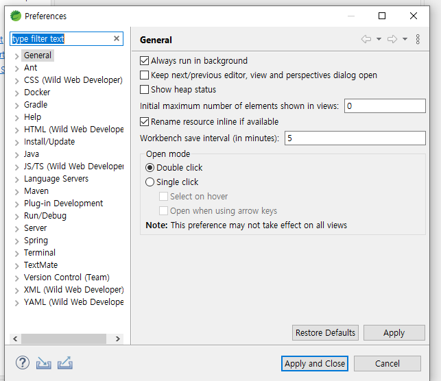 workspace-boot 폴더 생성 후 체크박스 클릭