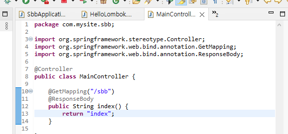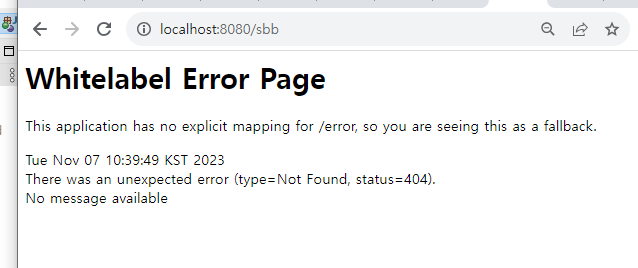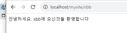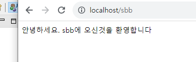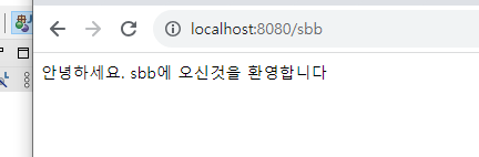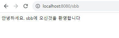 ๋ธ๋ผ์ฐ์ ์์ http://localhost:8080/sbb ํ์ด์ง๋ฅผ ์์ฒญํ์ ๋ "์๋ ํ์ธ์ sbb์ ์ค์ ๊ฒ์ ํ์ํฉ๋๋ค."๋ผ๋ ๋ฌธ์์ด์ ์ถ๋ ฅํ๋๋ก ๋ง๋ค์ด ๋ณด์.