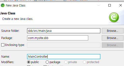 src/main/java ๋๋ ํฐ๋ฆฌ src/main/java ๋๋ ํฐ๋ฆฌ์ com.mysite.sbb ํจํค์ง๋ ์๋ฐ ํ์ผ์ ์์ฑํ๋ ๊ณต๊ฐ์ด...