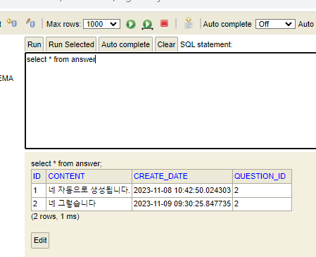 //๋ต๋ณ ์ ์ฅ ์ ์ง๋ฌธ ๊ฐ์ฒด์ ๋ต๋ณ ๋ด์ฉ์ ์