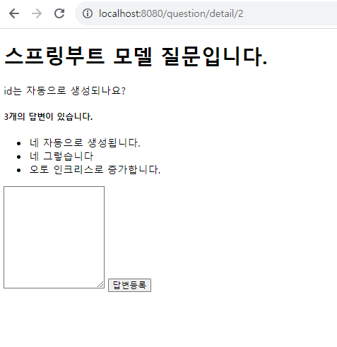 question_detail ์ ๋ฑ๋ก๋ ๋ต๋ณ ํ์ธ ํ ์ ์๊ฒ ์์