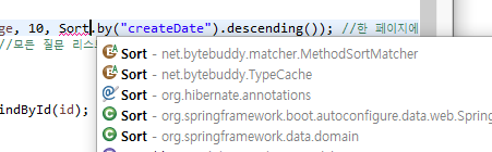 Pageable pageable = PageRequest.of(page, 10, Sort.by("createDate").descending()); //ํ ํ์ด์ง์ 10๊ฐ