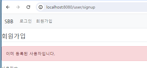 ์ด๋ฏธ ๊ฐ์ ๋์ด์๋ ์ฌ์ฉ์๋ก ํ์๊ฐ์ ์๋ ์