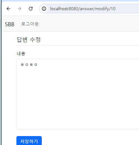 aService.modify(answer, answerForm.getContent());//답변 id와 , 수정 된 답변 내용 저장