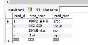 INSERT INTO Products (prod_name, prod_price) values ('ํ์ดํฌ ์ญ์ค', 860);