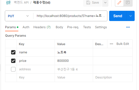 http://localhost:8080/products/5?name=๋ ธํธ๋ถ&price=800000