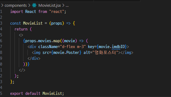영화정보를 props로 내려주면 movieList에서 그 정보를 가져와서
