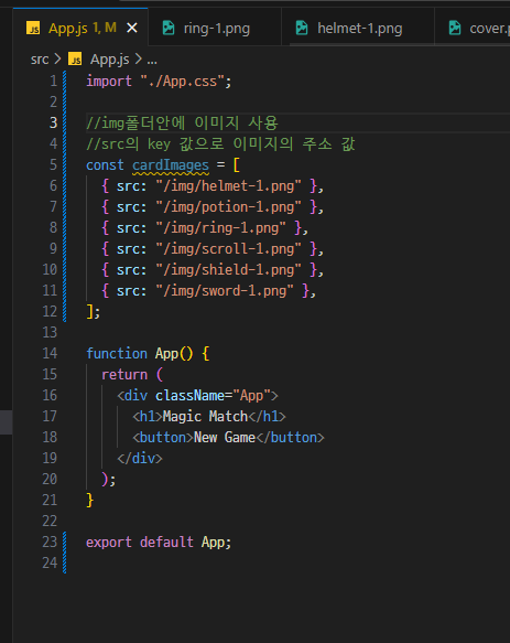 App.js 파일에서 만들었던 것 잘라내기해서 넣음