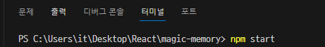 npm start를 통하여 실행해 준다