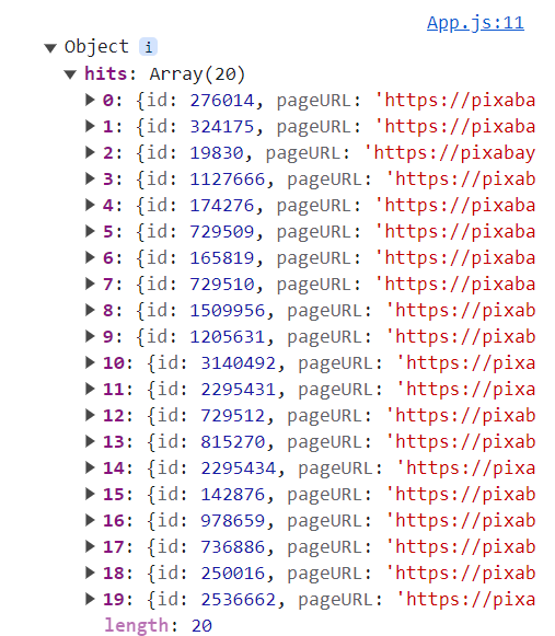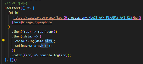 object안에 hits라는 이름으로 이미지 정보를 가져온다.