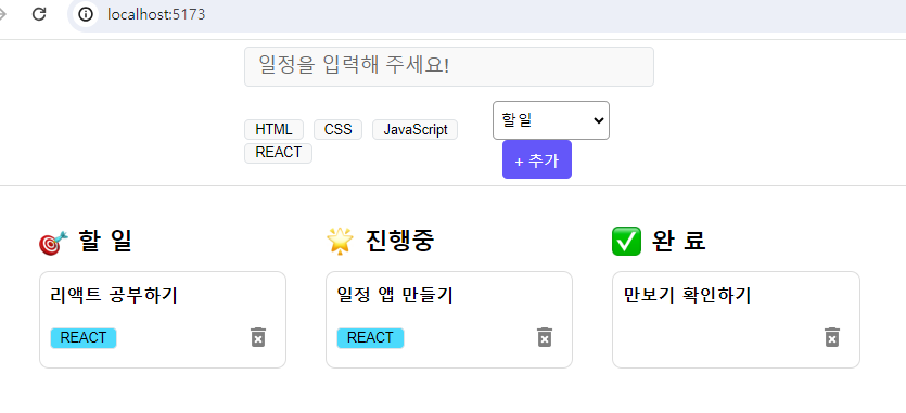 이제 휴지통 버튼을 누르면 해당 일정이 삭제되게끔 만들어 본다.