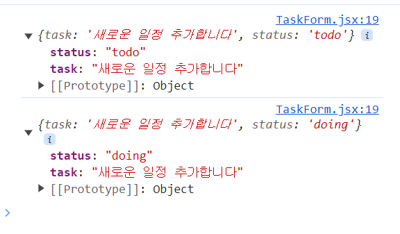 그리고 폼에도 input창에 값이 바뀌면 setTask로 바뀐 값이 업데이트돼서 저장되게끔 코드를 수정한다.