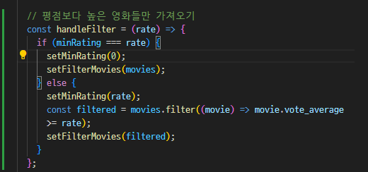 필터를 사용해서 평점 이상인 movies만 setFitlterMovies에 저장한다.