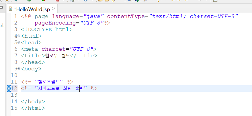 <% = %> : 자바코드 한 줄 씩 입력 할 경우