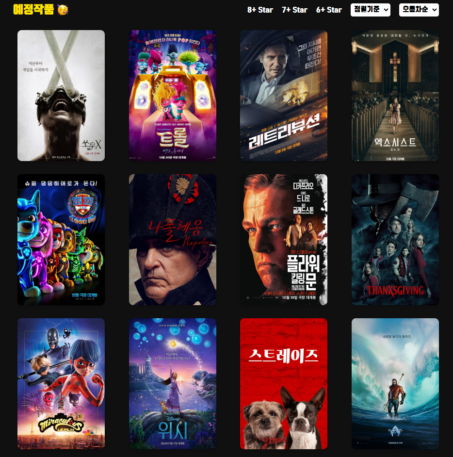 | [영화 앱 2] 평점 6점 , 7점 , 8점 이상 영화 가져오기 및 정렬 (0) | 2023.11.22 |