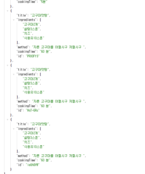 DB에도 고구마 맛탕이 추가된게 확인된다.