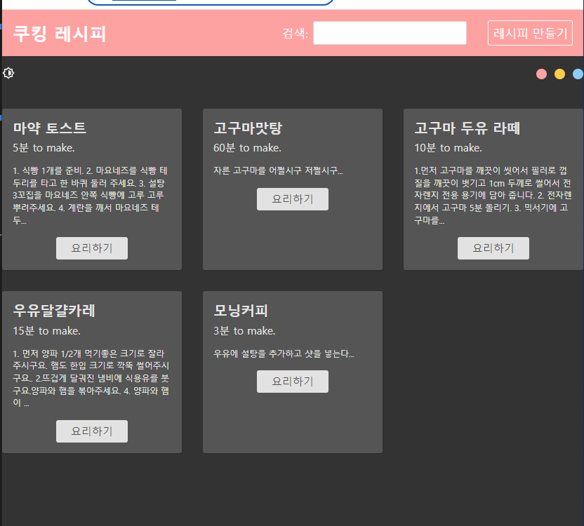 | [쿠킹레시피] 다크/라이트 모드 테마 추가 (1) | 2023.11.27 |