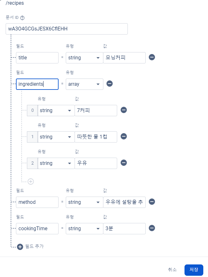 문서 ID는 유니크해야함 -> 자동으로 만듬
