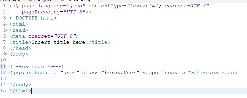 1. jsp ํ์ผ ์์ฑ -> setbean.jsp