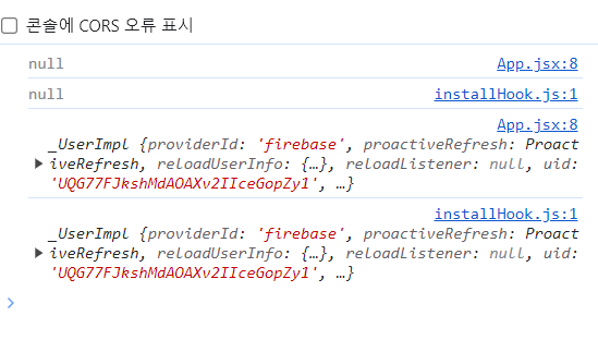 console.log(auth.currentUser); // 유저 정보 출력해보기