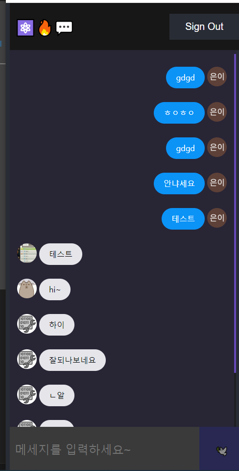 다른 유저가 들어와서 글을 남기면 왼쪽에 위치한다.