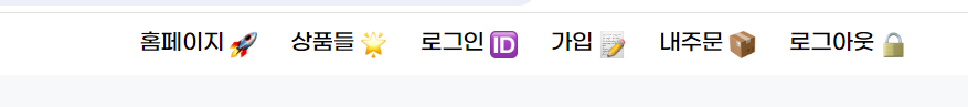 그리고 로그아웃 옆에 장바구니 링크는 이모지 없이 만들기 때문에 따로 만들어준다.