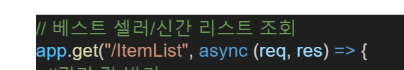 server.js์์ "ItemList"๋ก ๋๋๋ url์ ๊ฐ์ ธ์์ ์๋ผ๋ api์์ ๋ฐ์ดํฐ๋ฅผ ๊ฐ์ ธ์ front๋ก ์ ๋ฌํ๋ค.
