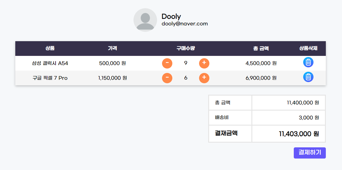 그리고 cart가 바뀔 때마다 total 금액을 계산해서 저장함