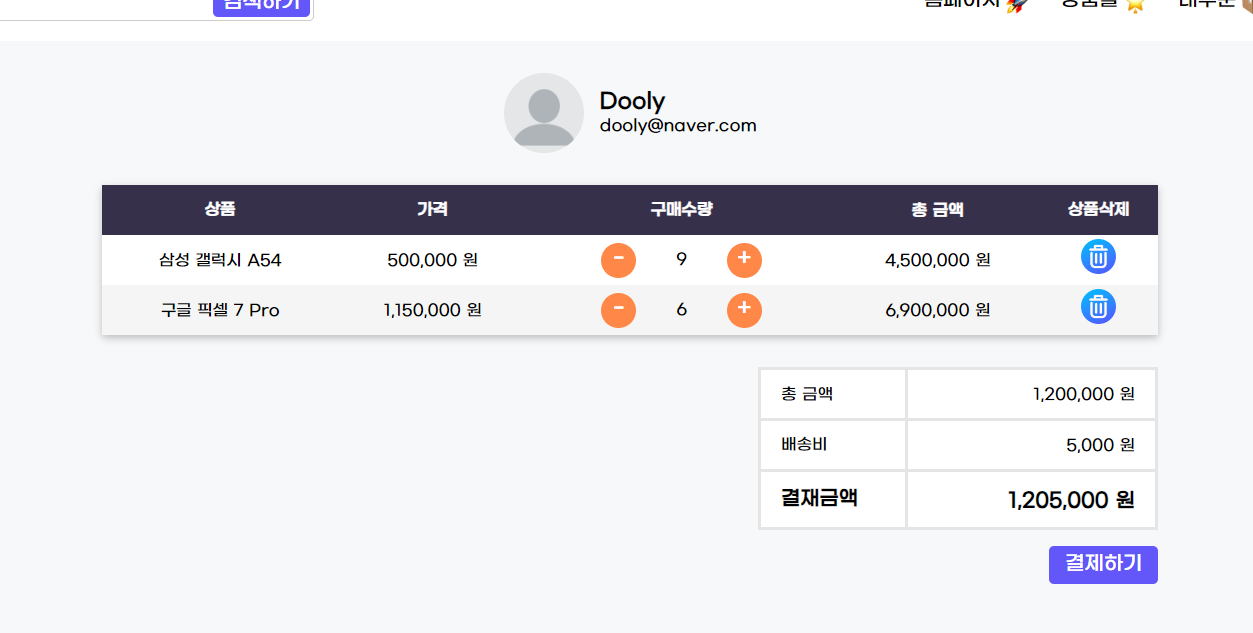 라우팅에서는 cartPage에 cart 데이터를 내려준다.