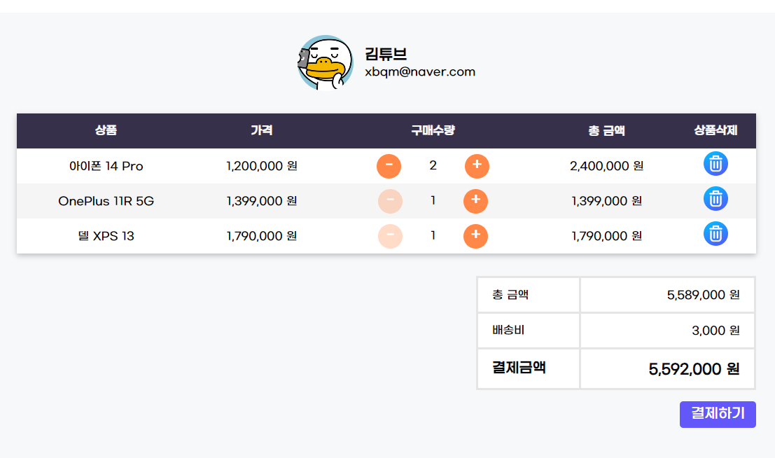 ์ญ์ ๋ฅผ ํ๊ณ ํ์ฌ ์ฅ๋ฐ๊ตฌ๋์ ์์ดํ ๊ฐ์์ ํฉ๊ณ ํ์ธํ๊ณ