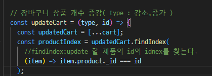 const productIndex = updatedCart.findIndex(