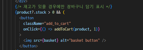 {/* ์ฌ๊ณ ๊ฐ ์์ ๊ฒฝ์ฐ์๋ง ์ฅ๋ฐ๊ตฌ๋ ๋ด๊ธฐ ํ์ */}