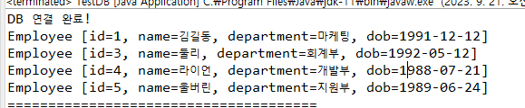 emp.setDob(resultSet.getString("dob"));//열이 dob인 데이터 값 입력