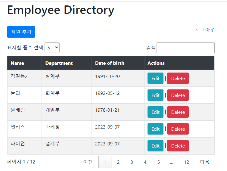 한페이지에 5개씩만 들어갈 수 있도록 데이터 테이블을 만들어준다.
