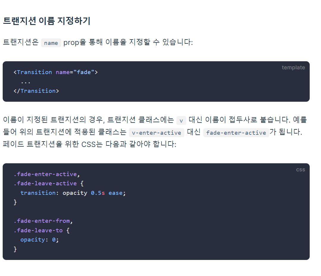 그리고 트랜지션 컴포넌트에 이름을 지정해서 style을 줄 수 있다.