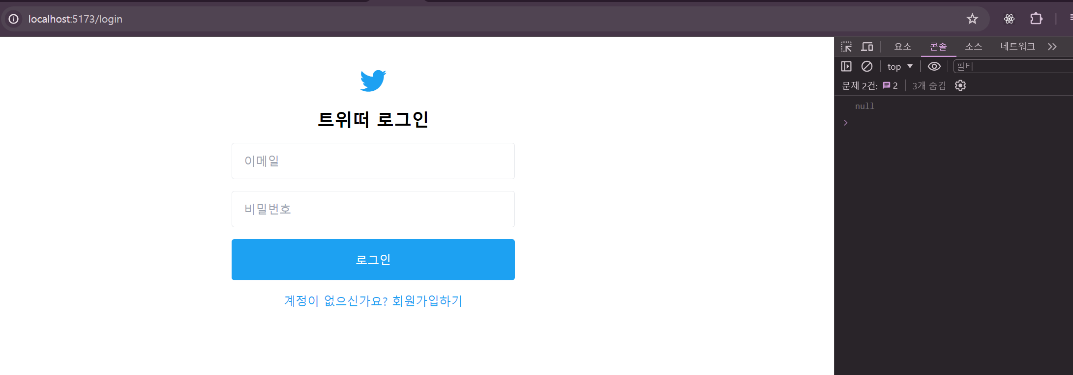 1. ๋ก๊ทธ์ธ ํ์ด์ง๋ก ์ด๋ ์ onMounted()๋ก ์ธํด ์ฝ์์ null๊ฐ์ด ์ถ๋ ฅ๋๋ค.