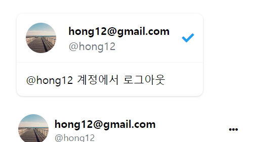 currentUser์ ์ ์ฅ๋์ด์๋ email๊ณผ username์ ํ์ํ๋ค.