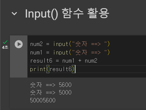 input()으로 입력받은 값은 모두 문자열로 취급한다.
