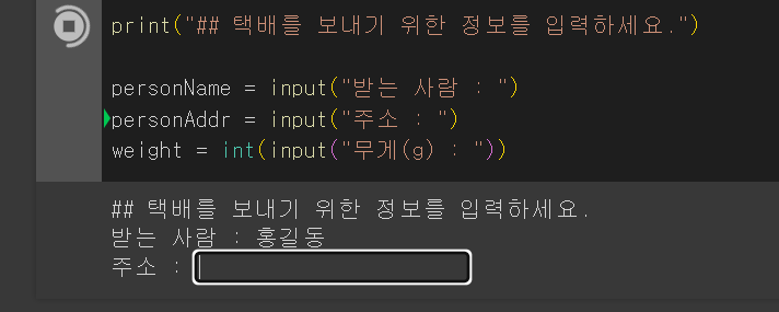 파이썬에서는 input() 함수를 사용해서 키보드로 입력받도록 한다.