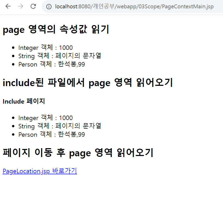 pageContext.setAttribute("pagePerson", new Person("ํ์๋ด",99));