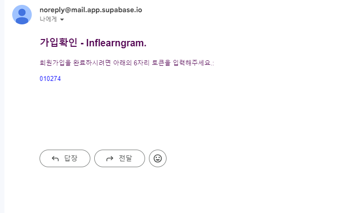메일함을 확인해 보면 아래와 같이 코드를 보내준다.