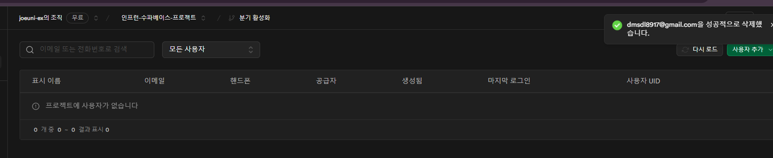 그리고 기존에 이메일로 가입진행했던 유저들을 삭제해준다.