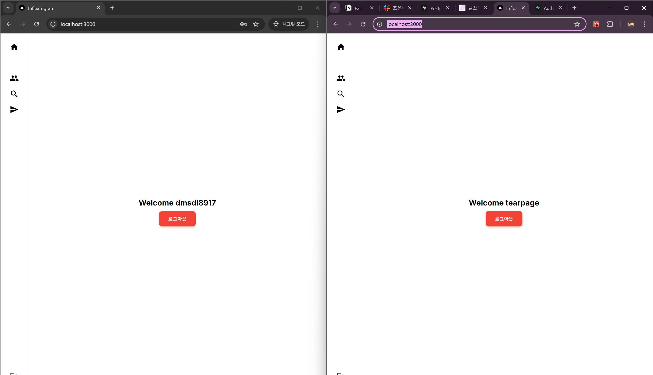 다른 유저로 로그인을 해서 두 명의 유저를 준비한다.