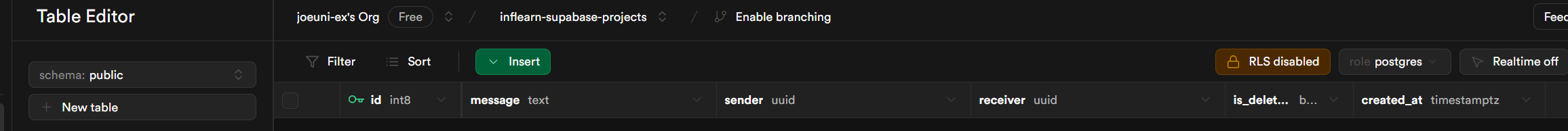 사용하고 있는테이블에 Realtime 기능을 on 해줘야한다.