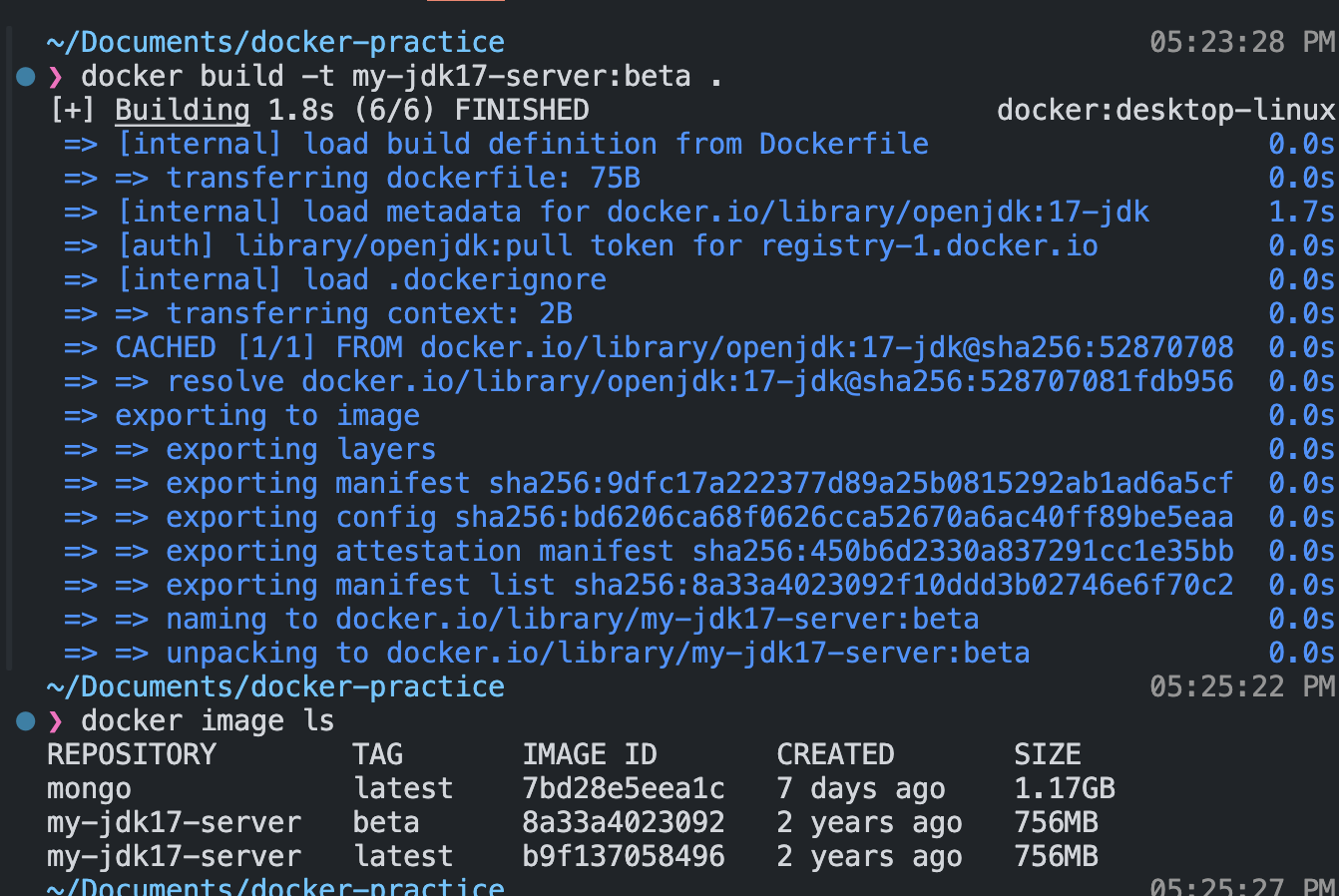 빌드 후 잘 이미지가 생성됐는지 확인해본다.